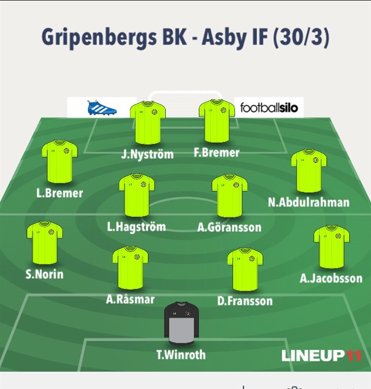 Andra halvlek är betydligt bättre än första. Vi ligger på högt upp och skapar en hel del chanser. I 64 min får vi en hörna och kan äntligen kvittera 2 - 2 genom Albin Göransson. Vi fortsätter skapa och i 87 sätter vi en frispark slagen av Samuel Norin innickad av Linus Bremer. 3 - 2 till Gripenberg som står sig. I andra halvlek byter vi målvakt till Jonathan Jansson som gör en fantasisk match, han håller nollan i sin halvlek.