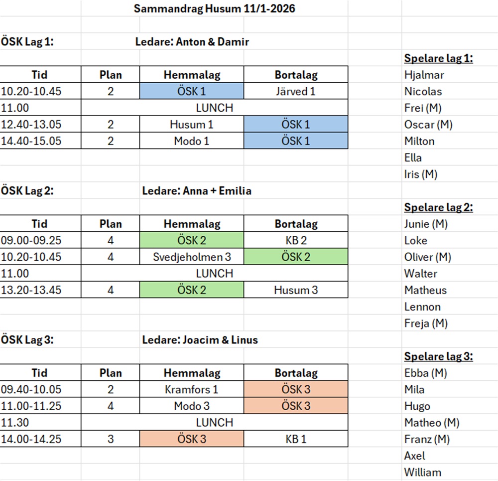 Lunchen är beställd för alla spelare och ledare. Alla spelare behöver innan sammandraget swisha 70kr till Anna 0761400579 (märk swishen med barnets namn)