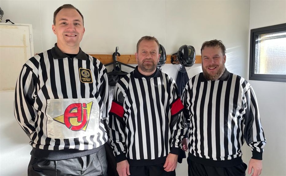 ÖSK's DAIF:are (domaransvarig i förening) Benny Lundgren med kollegerna Jim Sellin och Patrik Yngver mannade idag isen i Husum. Trion som tillsammans har imponerande 90 års erfarenhet av hockey dömde matchen mellan Järveds IF och KB65/ÖSK i U14-serien.