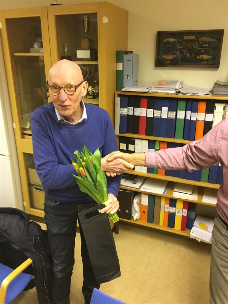 Jan, som bl.a sitter i styrelsen i ÖSFK, ansvarig för projekt Ädelfisk i Drängsjön, tillsynsverksamheten inom ÖSFK samt sakkunnig i fiskevårdsfrågor, uppvaktades av kollegorna i styrelsen i samband med styrelsemötet som hölls den 30/1...