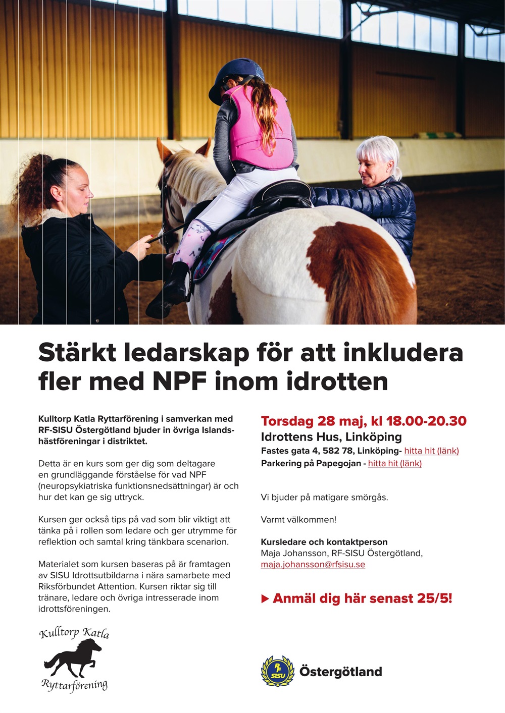 Kulltorp Katla Ryttarförening i samverkan med RF-SISU bjuder in islandshästföreningarna i distriktet till kurs!