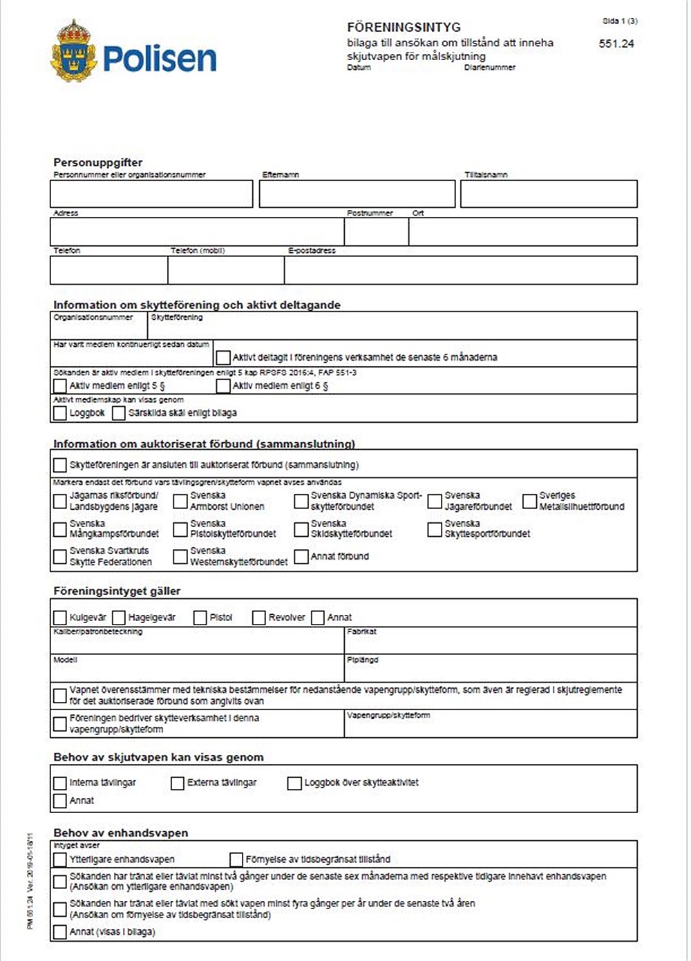 2. Förening får endast utfärda intyg för vapen som används i föreningens verksamhet och detta ska överensstämma med SvSF:s vapenpolicy och reglemente för aktuell gren.