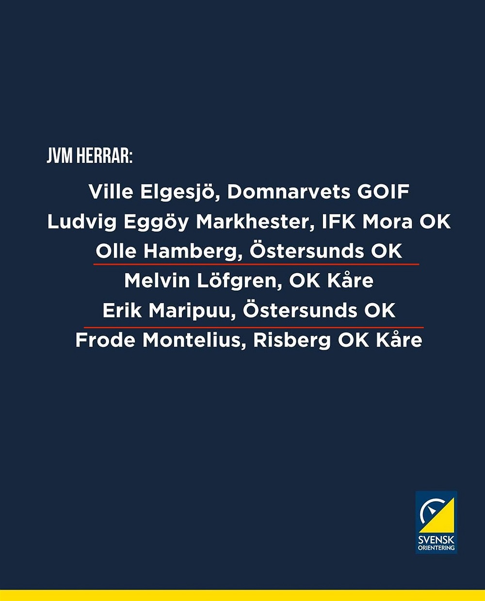 Från ÖOK är Olle & Erik uttagna. Sigrid Ohlsson OK Storsjön är uttagen till UEM.