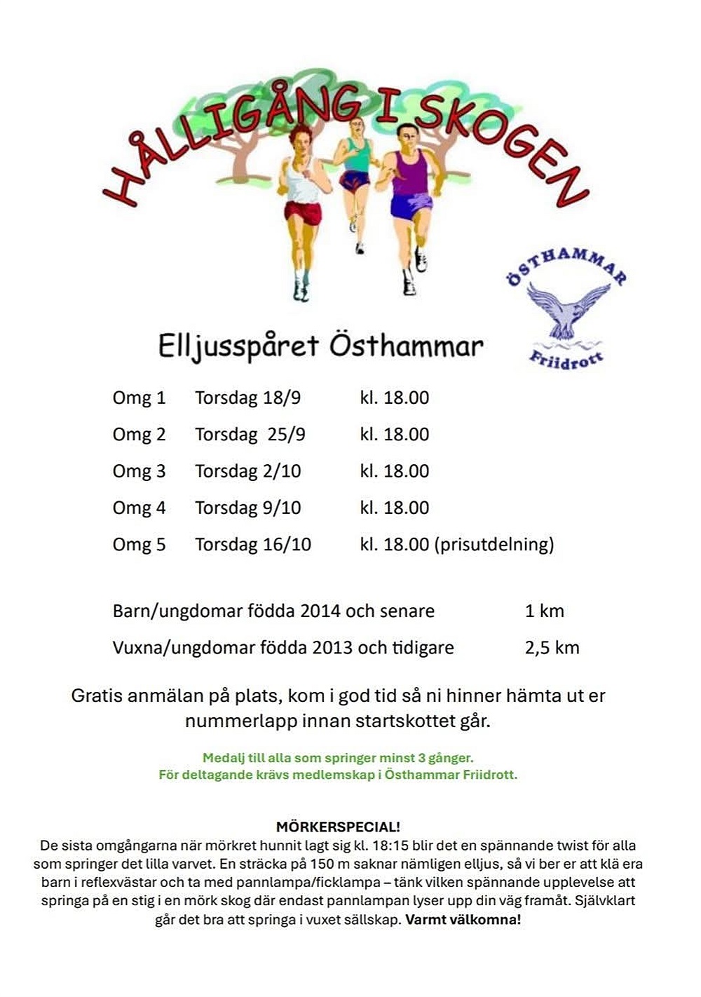Varje vår- och hösttermin anordnar vi Hålligång i skogen i elljusspåret i Östhammar.