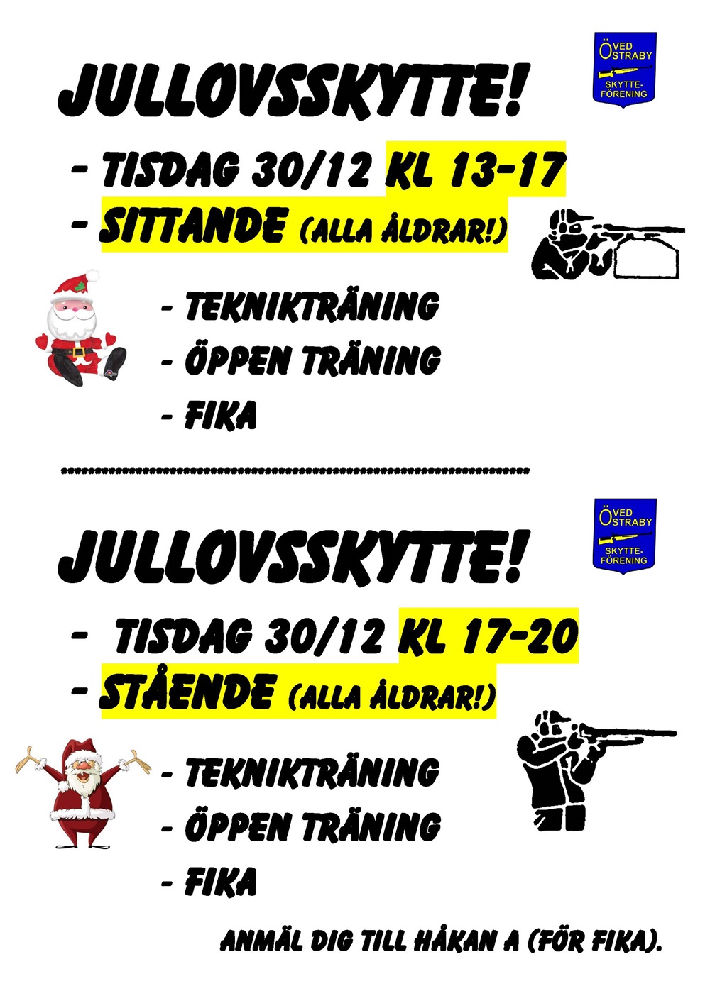 Nästa torsdag 18/12 är det Höstavslutning och Julskytte, anmälan kl 18-19 i ÖÖ-Hallen på skjutbanan utanför Bjärsjölagård.