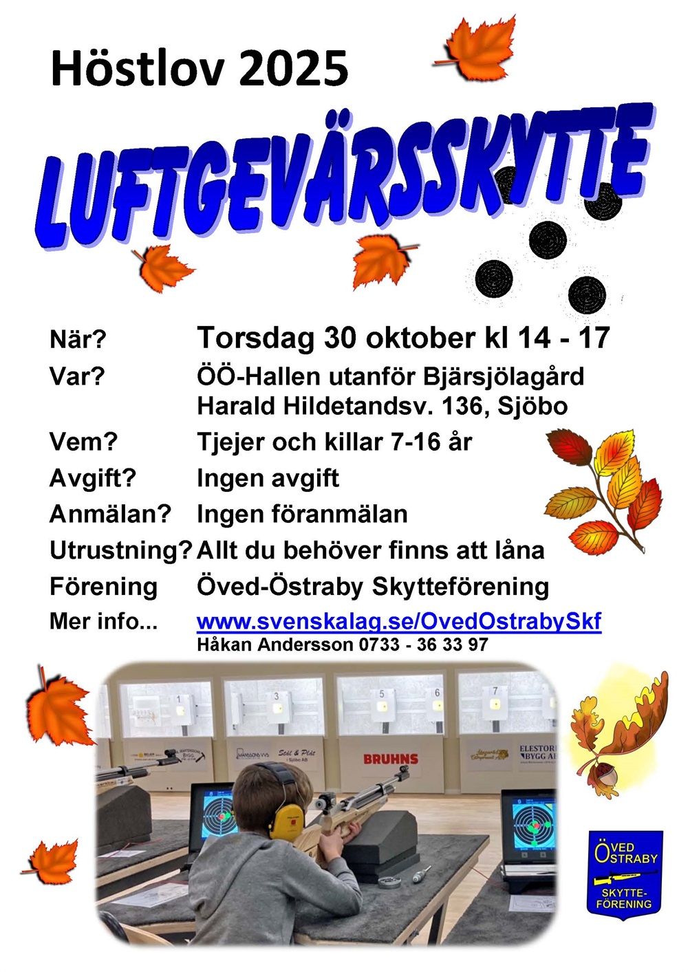 - Plats: ÖÖ-Hallen på skjutbanan utanför Bjärsjölagård (Harald Hildetandsväg 136, Sjöbo)