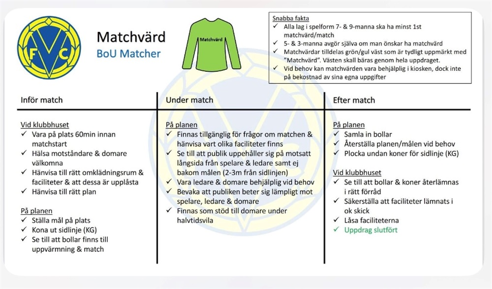 Här kommer ett schema för vilka som är tänkta till matchvärdar de gånger vi spelar match på hemmaplan. Alla matcher är klockan 15.00.
