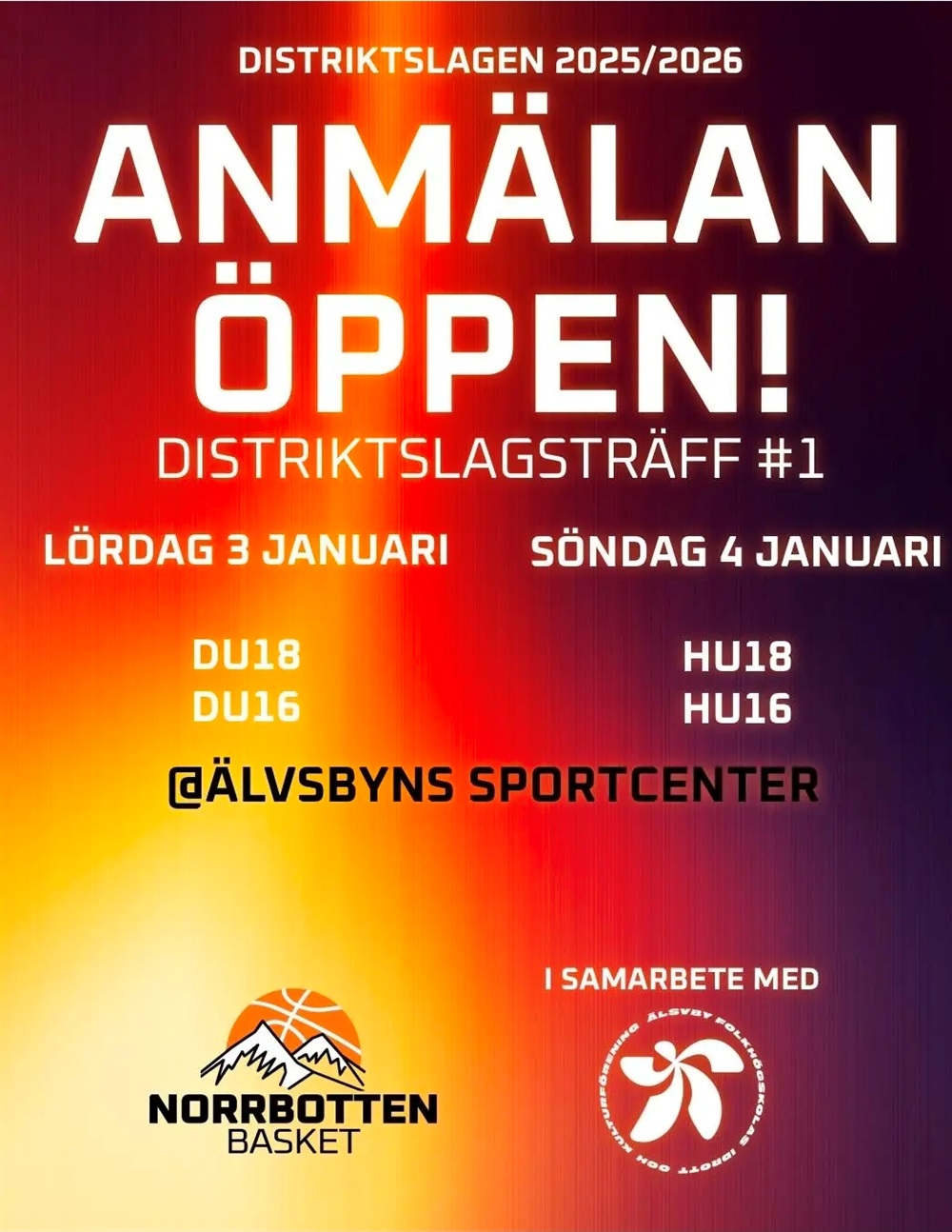 Hej! Anmälan till den första samlingen för distriktslagen 2025/2026 är nu öppen. Spelare födda -10 och -11 har möjlighet att anmäla sig till distriktslagsträffarna, läs mer och anmäl via denna länk.