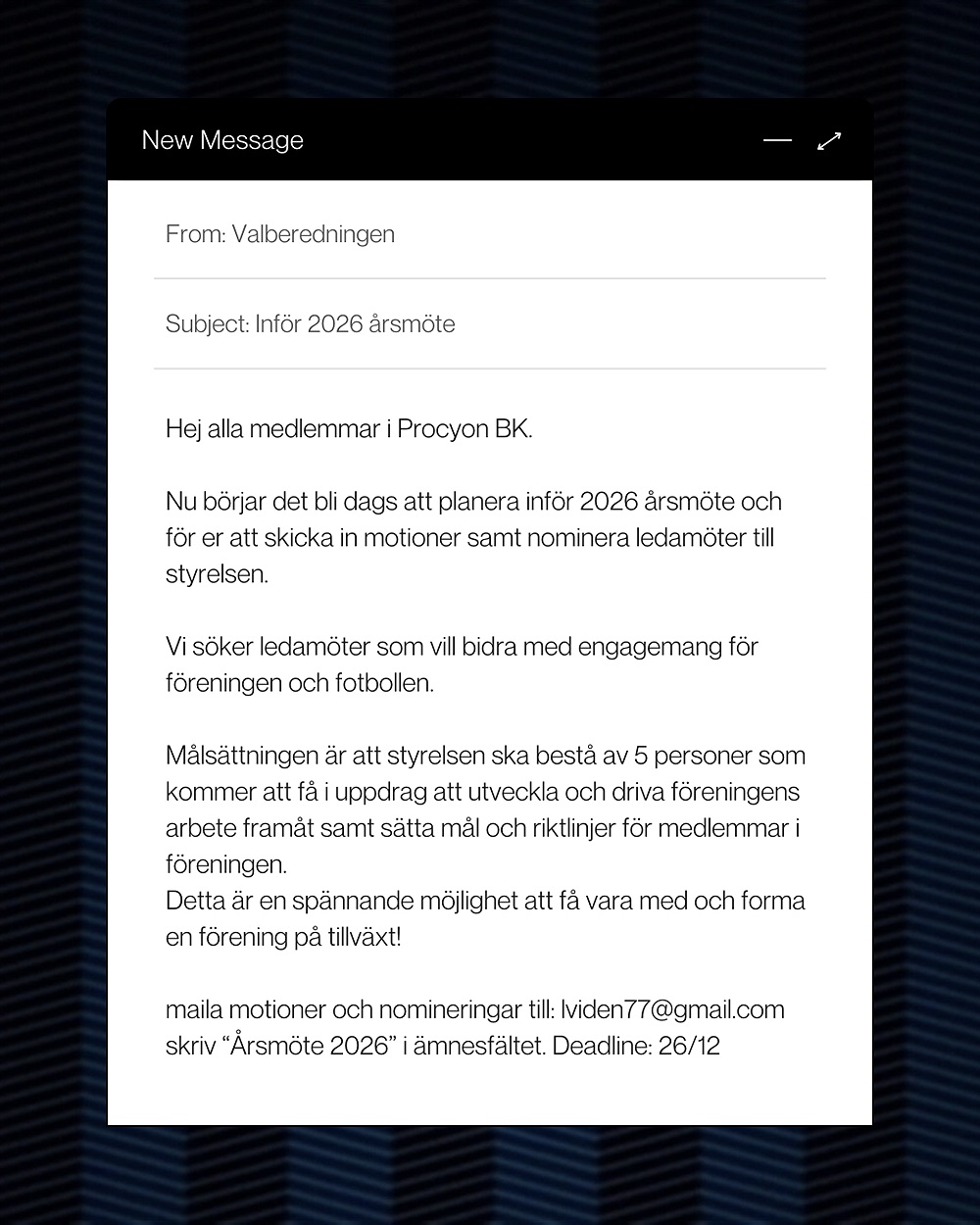 Året börjar sakta gå mot sitt slut och 2026 smyger allt närmare. Det innebär också att vårt nästa årsmöte för vår fantastiska förening snart närmar sig.