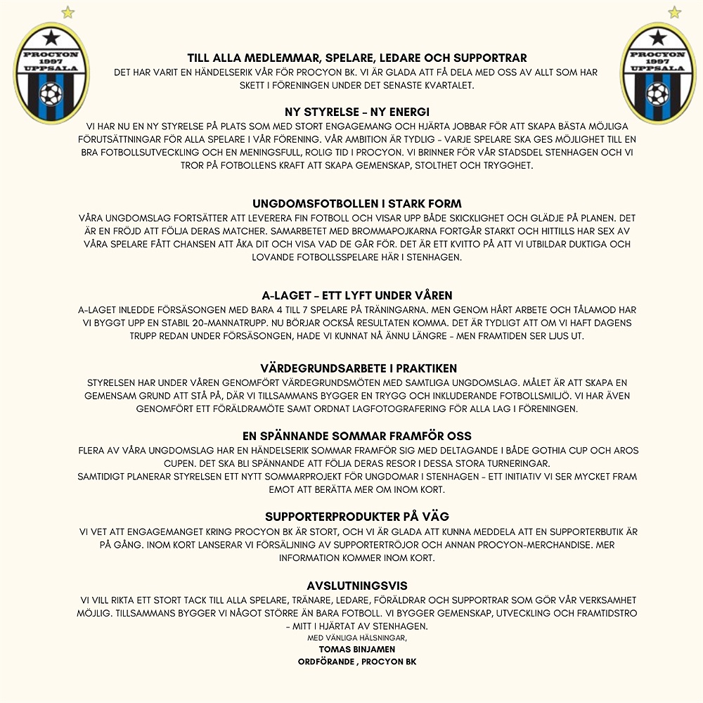 Procyon BK - Nyhetsbrev - Våren 2025