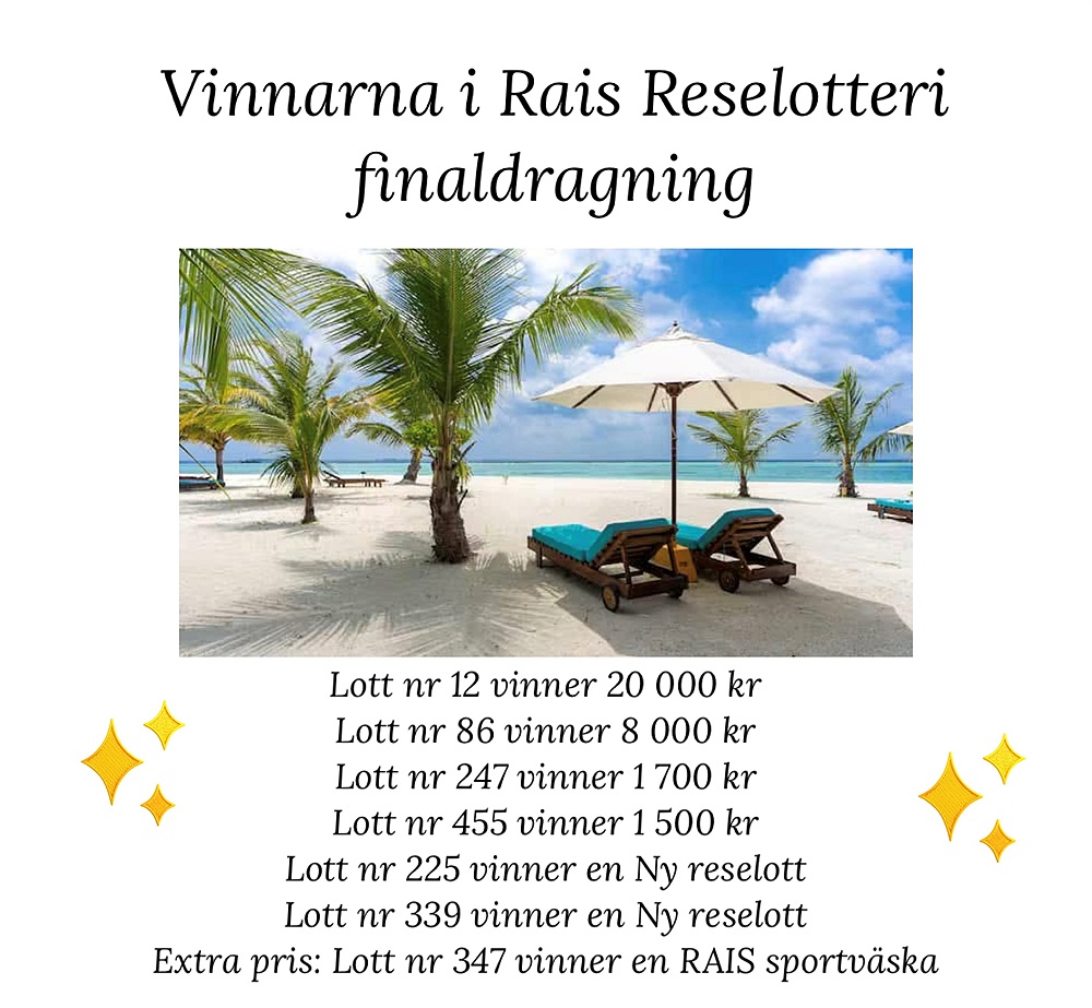 Dragningslistan publiceras på vår hemsida: www.rais.se och Rais officiella Facebooksida.