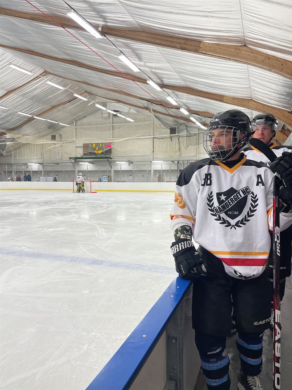 Holmberg fick göra sitt första mål i Ramberget och fick behålla pucken ändå tills nästa nedsläpp då den behövdes igen.
