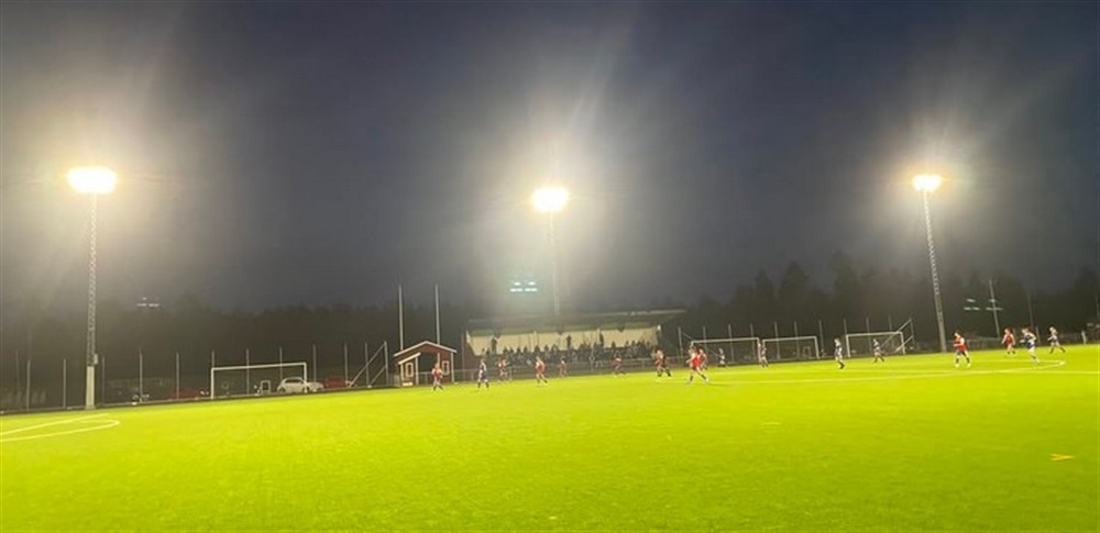 Belysning: LED 200 lux, 6 master (h=18 m). 35 st armaturer med 420 W effekt på varje. Det ger en ljusstyrka på 200 lux på alla platser på planen. Belysningen styrs från en central och kan ställas i fyra steg: 25 procent, 50 procent, 75 procent och 100 procent.