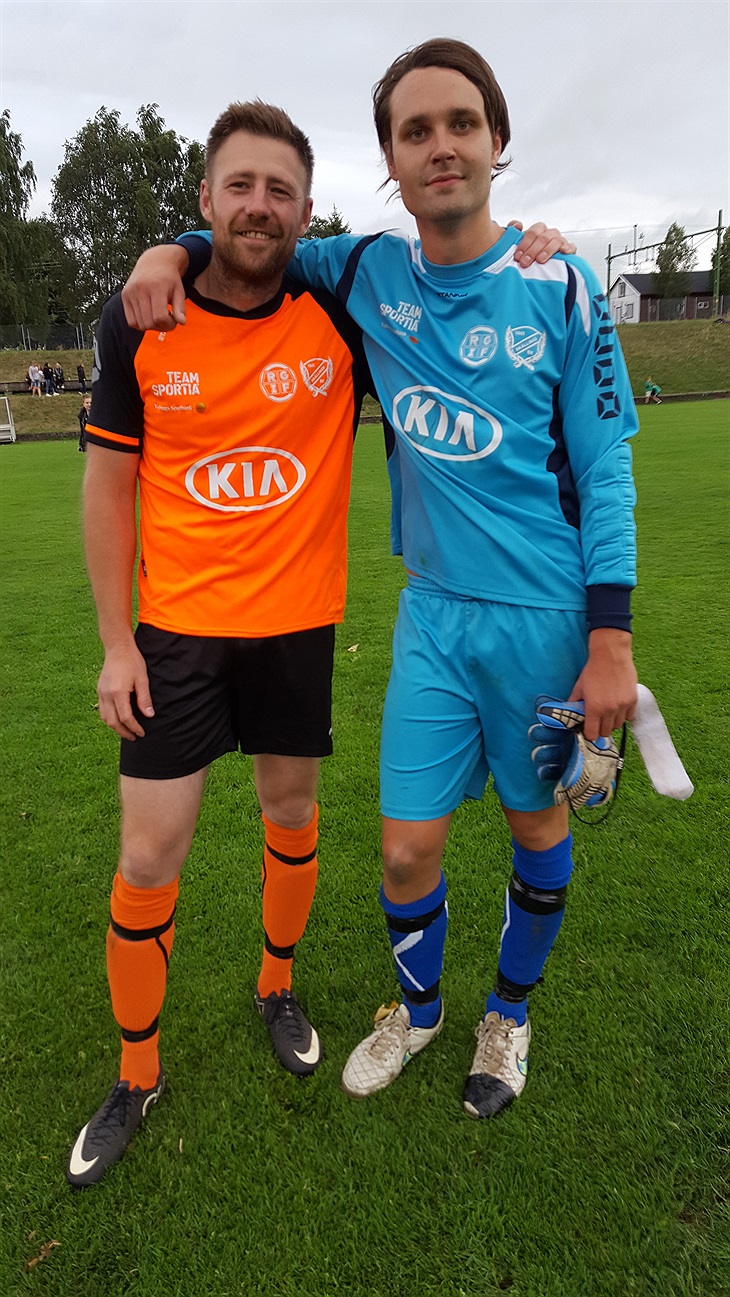 Två av dagens matchjältar. Målskytten Rikard Backman och keepern Marcus "Lennon" Eriksson