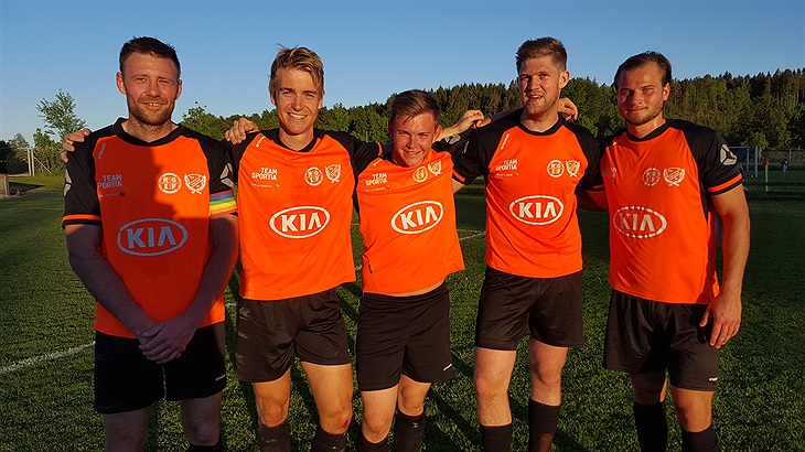 Fem glada målgörare: Rikard Backman, Adam Sjöholm, David Carlsson, Joacim Karlsson och Lennart Hesslow.