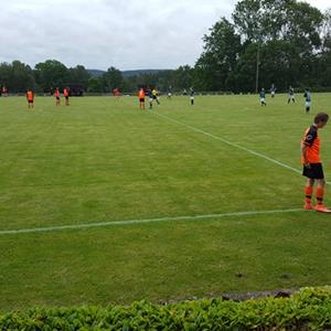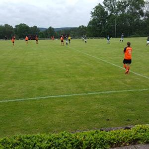 Nu blev det åter lite scenförändring och R/S flyttade upp spelet. Lennart hade ett par riktigt vassa chanser men bollen gick över den ena gången och målvakten räddade den andra.