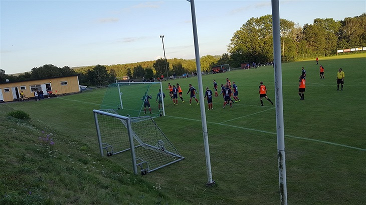 Det hände inte mycket chansmässigt den följande kvarten efter målet. Det var först i 19:e minuten som L/M lyckades överlista hemmaförsvaret och få bollen förbi Backe som touchade bollen men inte tillräckligt för att den skulle gå utanför stolpen.