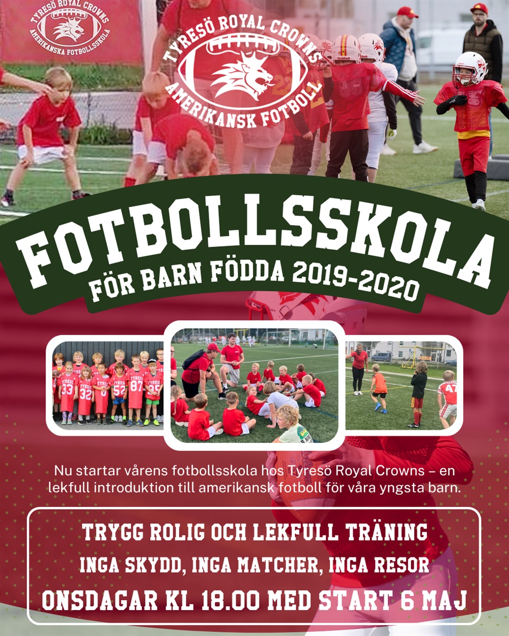 Nu startar vårens fotbollsskola hos Tyresö Royal Crowns – en lekfull introduktion till amerikansk fotboll för våra yngsta barn.