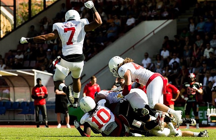 TRC's defense lett av Andrew Preston & Benjamin E tacklar Carlstada tidigare QB Anders Hermodsson i det senaste mötet mellan de två lagen. TRC vann den matchen i slutsekunderna & Carlstad besegrades på för första gången sedan 2010 på hemmaplan.