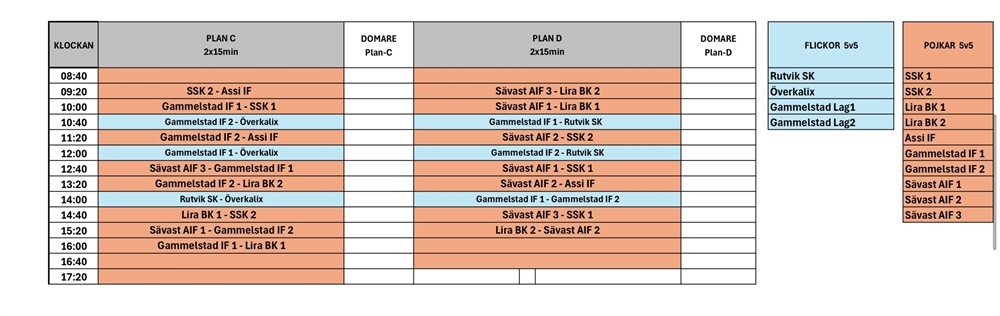vi samlas 30 minuter innan första matchen som startar 10:40