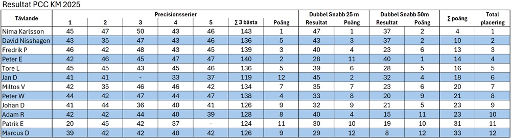 Resultat Klubbmästerskap PCC 2025