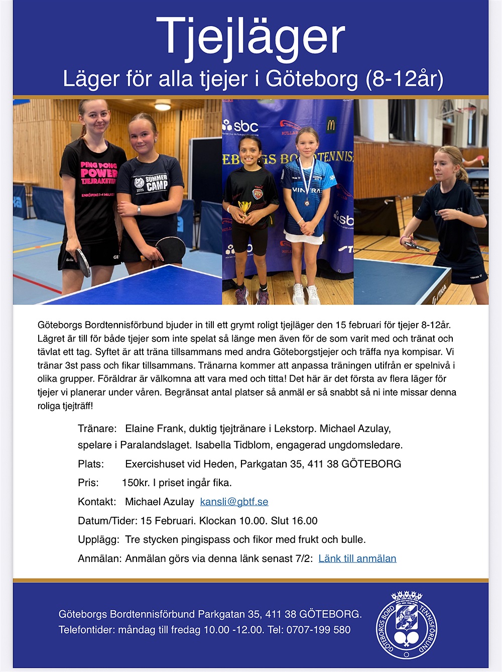Föreningen bedriver tränings-, läger- och tävlingsverksamhet inom bordtennis för alla åldrar, men med tonvikt på barn och ungdom, såväl tjejer som killar, samt pensionärer. Föreningen verkar för fysisk aktivitet och hälsa för alla, från motionär till elit, och verkar för inkludering och mångfald. Verksamheten riktar sig även till personer med fysisk eller intellektuell funktionsnedsättning (Para-Bordtennis). Föreningen har träning i Lilla Hallen, Kulturhuset, Västra Frölunda.