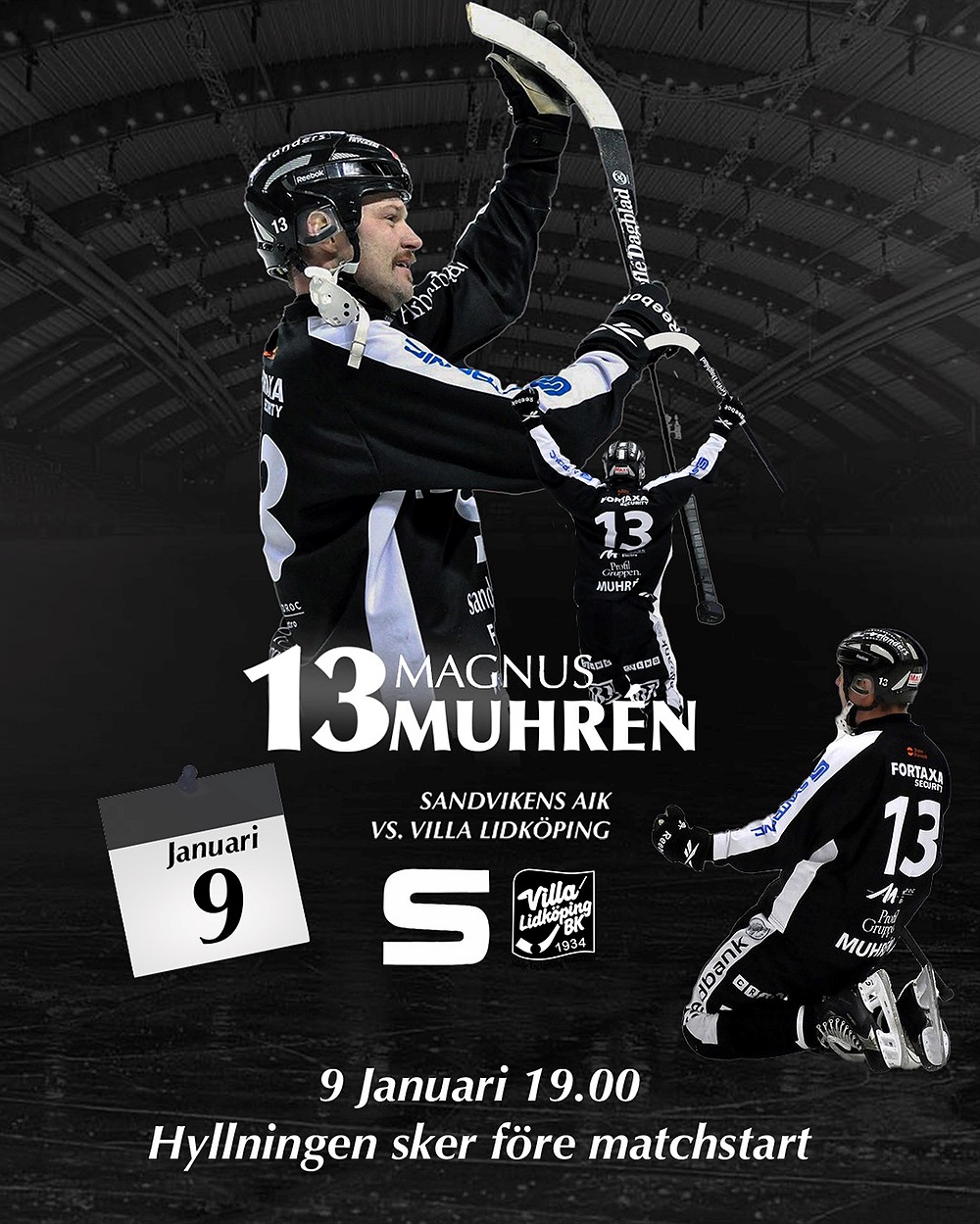 Var på plats i god tid, hyllningen börjar ca kl. 18.40. Var med när vi ger Magnus den hyllning han förtjänar. Låt läktarna fyllas, låt applåderna eka och låt hela bandy-Sverige visa sin respekt.