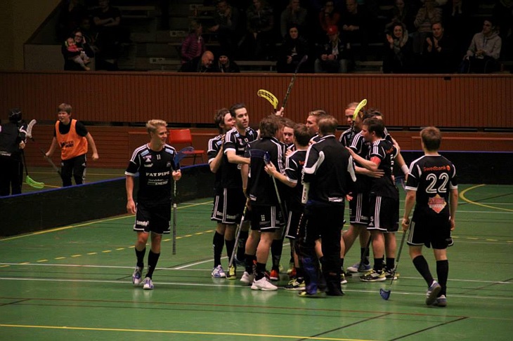 I och med att KAIS Mora vann hemma mot Huddinge (matchen startade en timme tidigare) så visste vi att vinst skulle säkra kontraktet. Leo Jonsson visade vägen genom sitt 7-2 mål, assisterad av Söderkvist och efter det blev det aldrig någon dramatik. Duvbo satte 7-3 men skyttekungen Anders Nygren pangade in 8-3, assist återigen av Söderkvist. Efter det slappnade vi av något och blev lite för mesiga och gästerna läts reducera två gånger om. 8-5 slutade matchen och det var en stor glädje och lättnad som viades upp när slutsignalen gick.