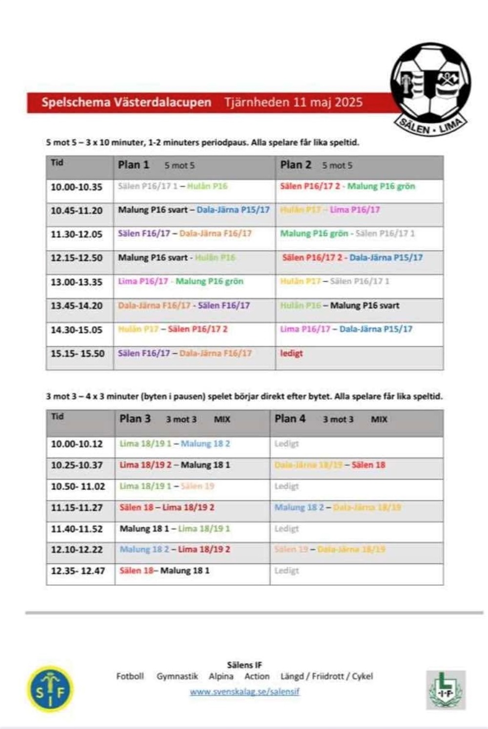 På söndag är det äntligen dags för vår första cup. Vi samlas kl. 10.30 på Tjärnheden och har vår första match kl. 11.30. Vi spelar totalt tre matcher under dagen mot ett flicklag födda 16/17 från Dala Järna. Se spelschema ovan för övriga tider.