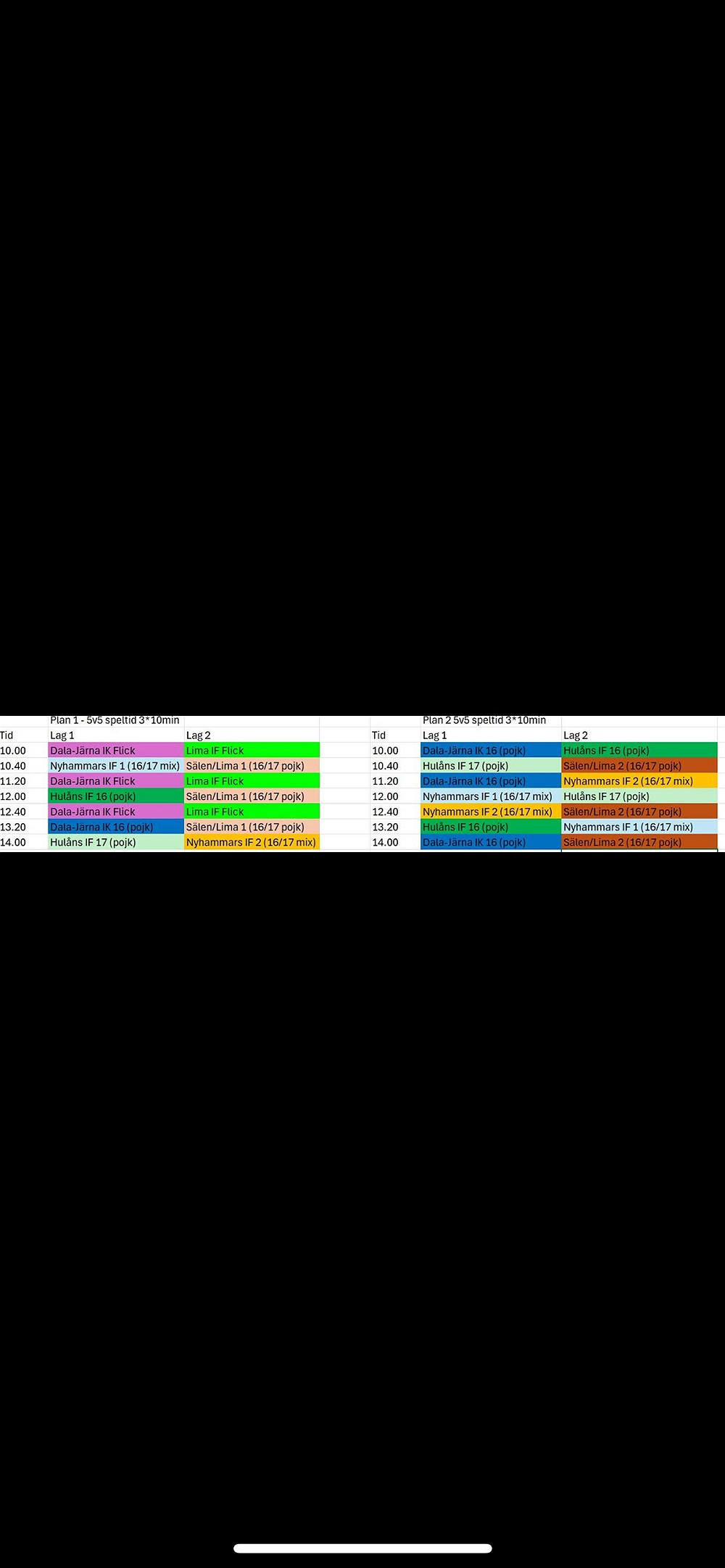 samtliga matcher på plan 2. 10.40 Hulåns if, 12.40 Nyhammars if, 14.00 Dala-Järna IK