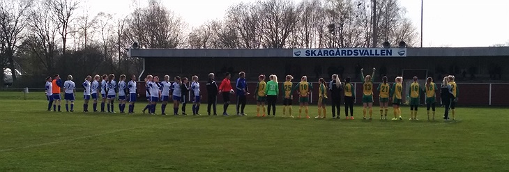 Första seriematchen spelades mot Hasslö GoIF. Tjejerna fick ett varmt välkomnande genom intåg och spelarpresentation på Skärgårdsvallen. Härlig start på säsongen!