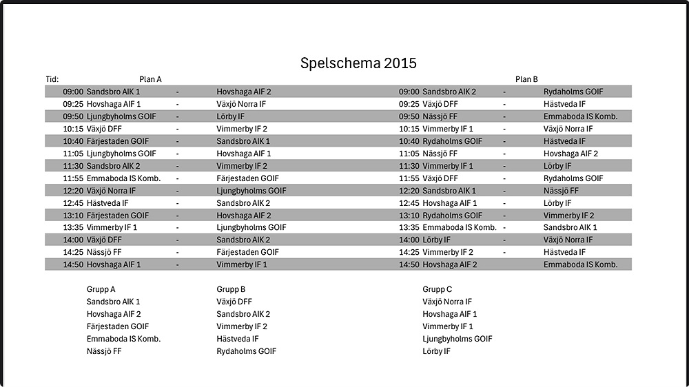 lagen och spelschema ser ni ovan, samling för alla 08.20 (vi kommer ombytta denna gång)