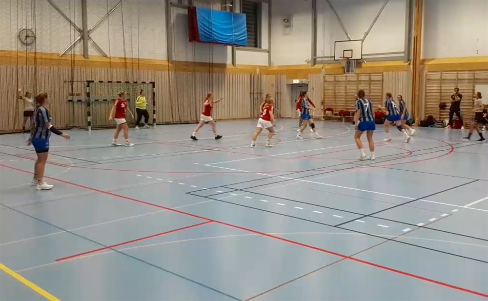 Damerna hängde med i matchen 20 minuter. Hanna Ek inledde målskyttet med ett fint samarbete och dundrade in 1-0 i första anfallet. Vi fick se en hel del tekniska fel från båda lagen och anfallsspelet blev lite haltande. Efter en timeout av Sannadals SK i de 19:e minuten vid ställningen 6-8 gjorde Djurgården hela 4 raka mål och ökade ledningen till 6-12. Även om Sannadal återhämtade sig lite såg det lite för lätt ut för gästerna. I halvtid var ställningen 9-13.
