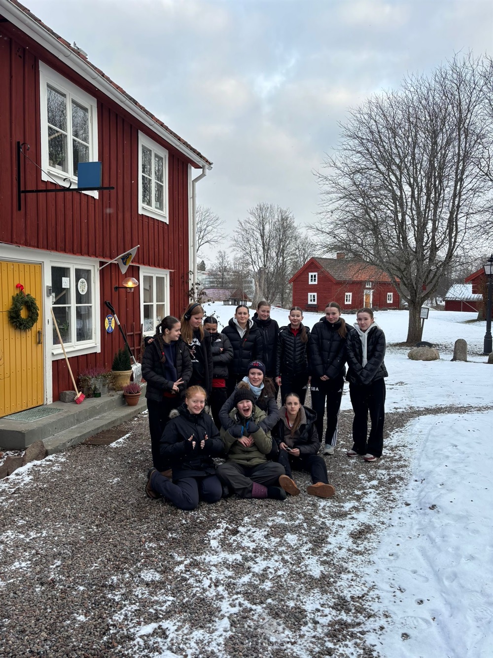Samtliga tjejer var klara för avfärd mot arenan enligt schemat och ledarna peppar laget inför Redberglid-matchen.