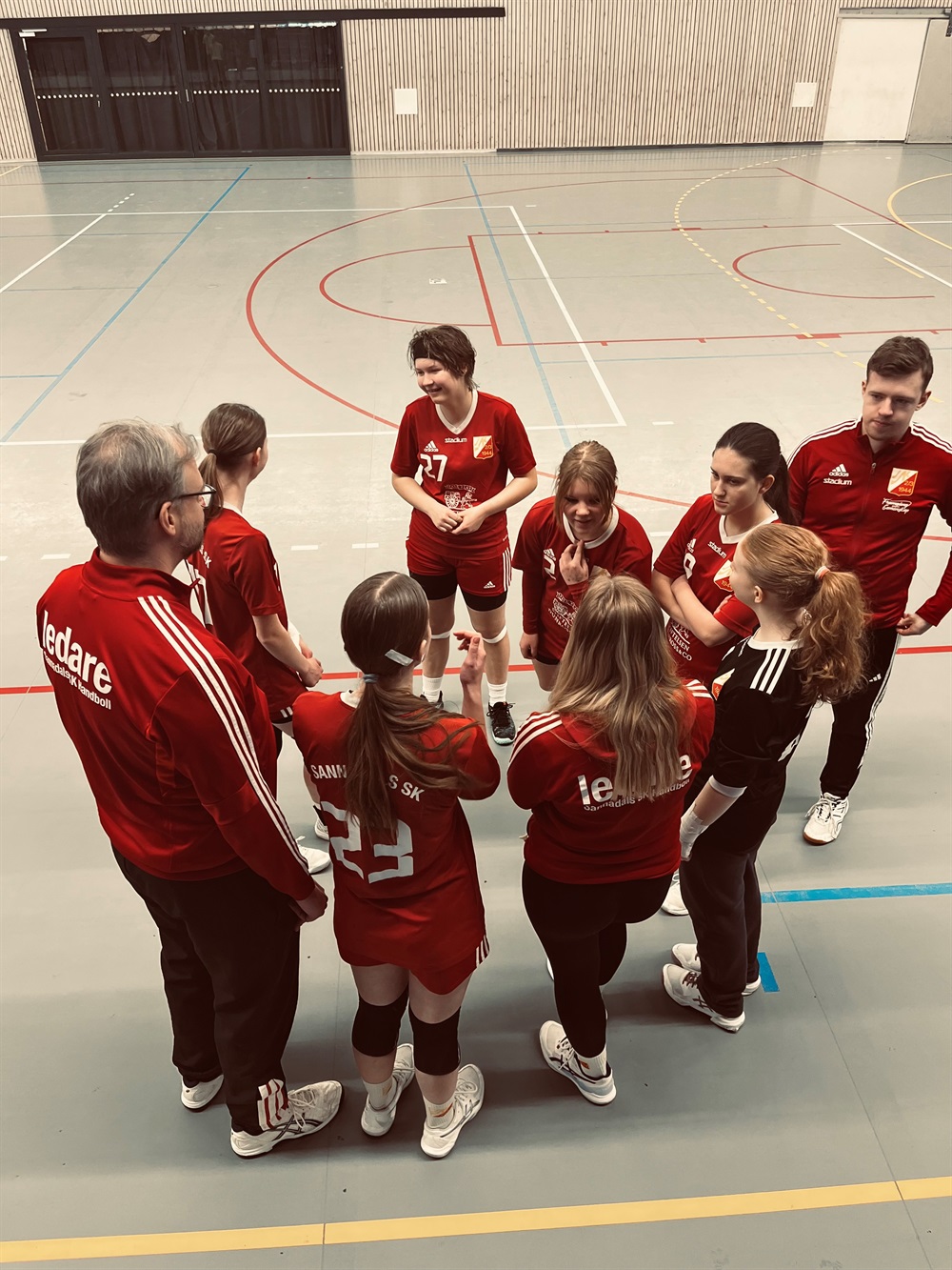 Välbehövlig fem minuters vila och matchen är igång. SSK är tuffa i försvaret men Uppsala kommer ändå fram till sista passning och avslut. Våra tjejer hittar samspelet på vänster kanten där Majken stegar förbi och Bella försöker köra över försvararna. Millie ordnar en utvisning men i en efterföljande high-5 ser hon ut att skada sig (dock ingen fara). Både Andrea och Solvi får till sina snurrar men bollen vill inte riktigt gå in tillräckligt ofta. Att kämpa och vara på tå hela tiden tär på krafterna men det syns inte så tydligt att Uppsala är 4 spelare fler och får vila. Våra tjejer håller ihop det bra och ger sig aldrig. Må vara att men inte orkar eller hinner med emellanåt men kämpaglöden är det inget fel på. I Andra halvlek avlossar vi 21 skott varav 10 går in, det är riktigt bra och laget har smak på mer.