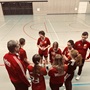 Det ser lite ensamt ut på Sannadalsbänken där Jossan, Simon och Daniel sitter utan spelare. Matchen startar att ställningen 0-0 håller i mer än 2 minuter känns värt att fira. De röda letar efter lägen men kommer inte riktigt till avslut, samtidigt har Uppsalingarna kvicka fötter och deras nummer 14 är svår att få grepp på. Timeout efter 7 minuter och ställningen 6-1 är en tuff start. Instruktioner och pepp gör att spelet lossnar och nästa period är jämnare. Bland annat kommer Stephanie med fart på högerkanten och skjuter, bollen går in vid bortre stolpen.
