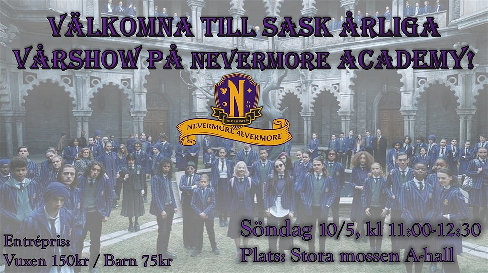 Välkommen till Academy Nevermore. En skola för utstötta, outsiders och de som inte riktigt passar in. Det här är en berättelse om mörker och ljus, vänskap och hemligheter, och valet mellan vilka vi är och vilka vi blir. 10:20 Öppnar dörrarna! OBS! Varje förälder och besökare ska betala entréavgiften . Entrépris 150kr vuxen / 75kr barn