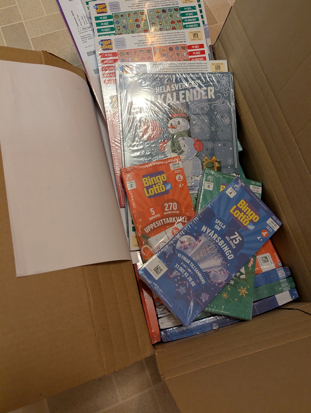Jag kommer ha med mig bingolotter till skidstugan de träningar som jag är där och det går bra att hämta sin leverans där.