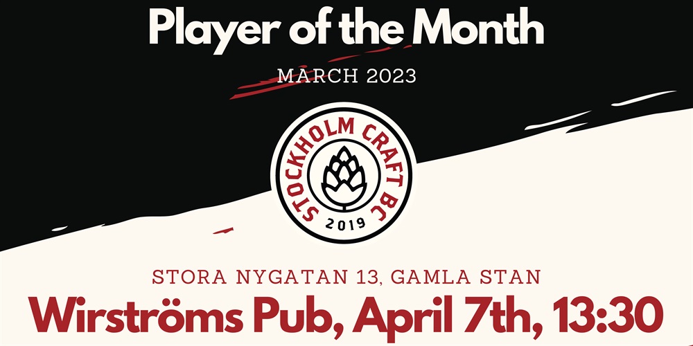 The year’s first Player of the Month will be announced and presented on Sunday, April 7th, at Wirströms Pub from 13:30.