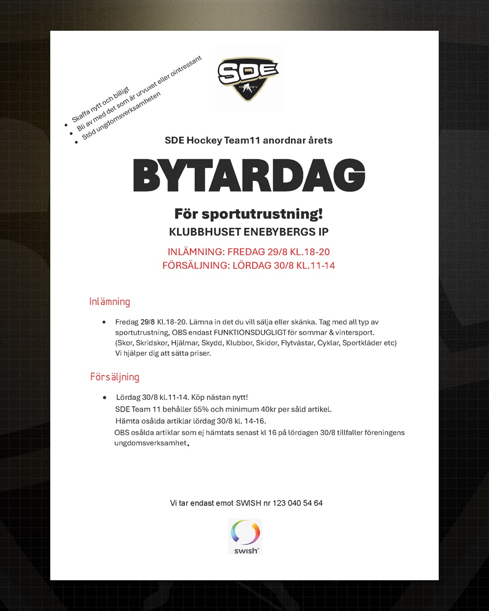 Inför sin Stamfordresa anordnar SDE Team 11 en bytardag för sportutrustning – perfekt läge för att uppdatera eller sälja utrustning!