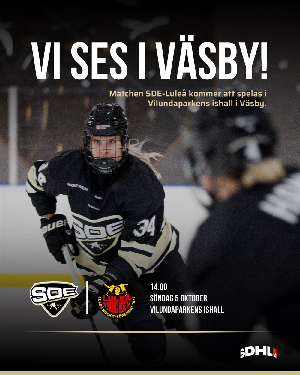 SDHL matchen mot Luleå nu på söndag, 5 oktober kl.14.00, spelas i