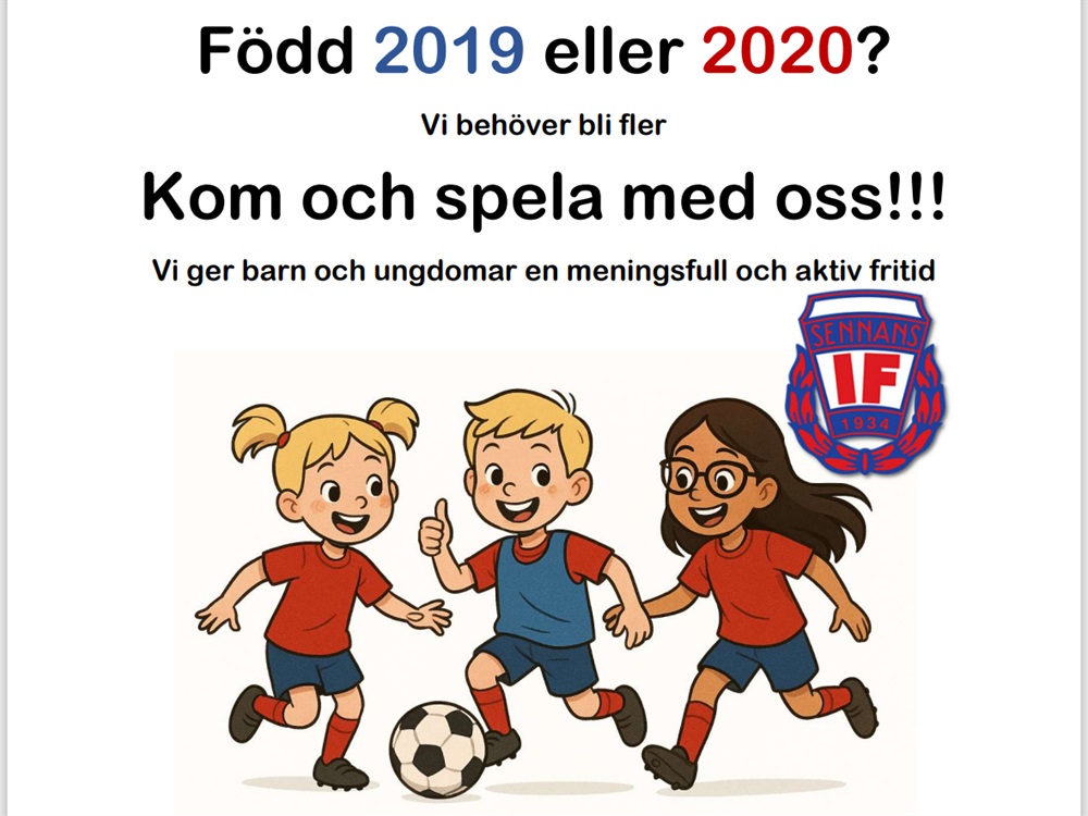 Sennans IF har tagit steget upp till Division 5 inför säsongen 2026 och välkomnar nu nya spelare som känner sig sugna på att spela och tillhöra ett härligt gäng.