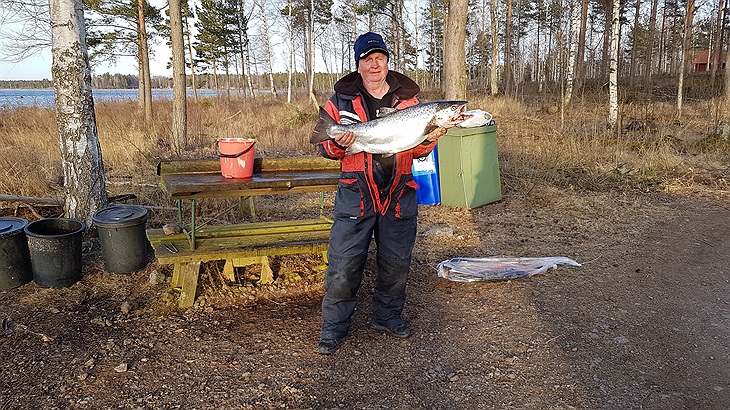 Lasse kan börja känna sig säker på årets största fisk till hösten med sin lax från vårfisket i Vänern.