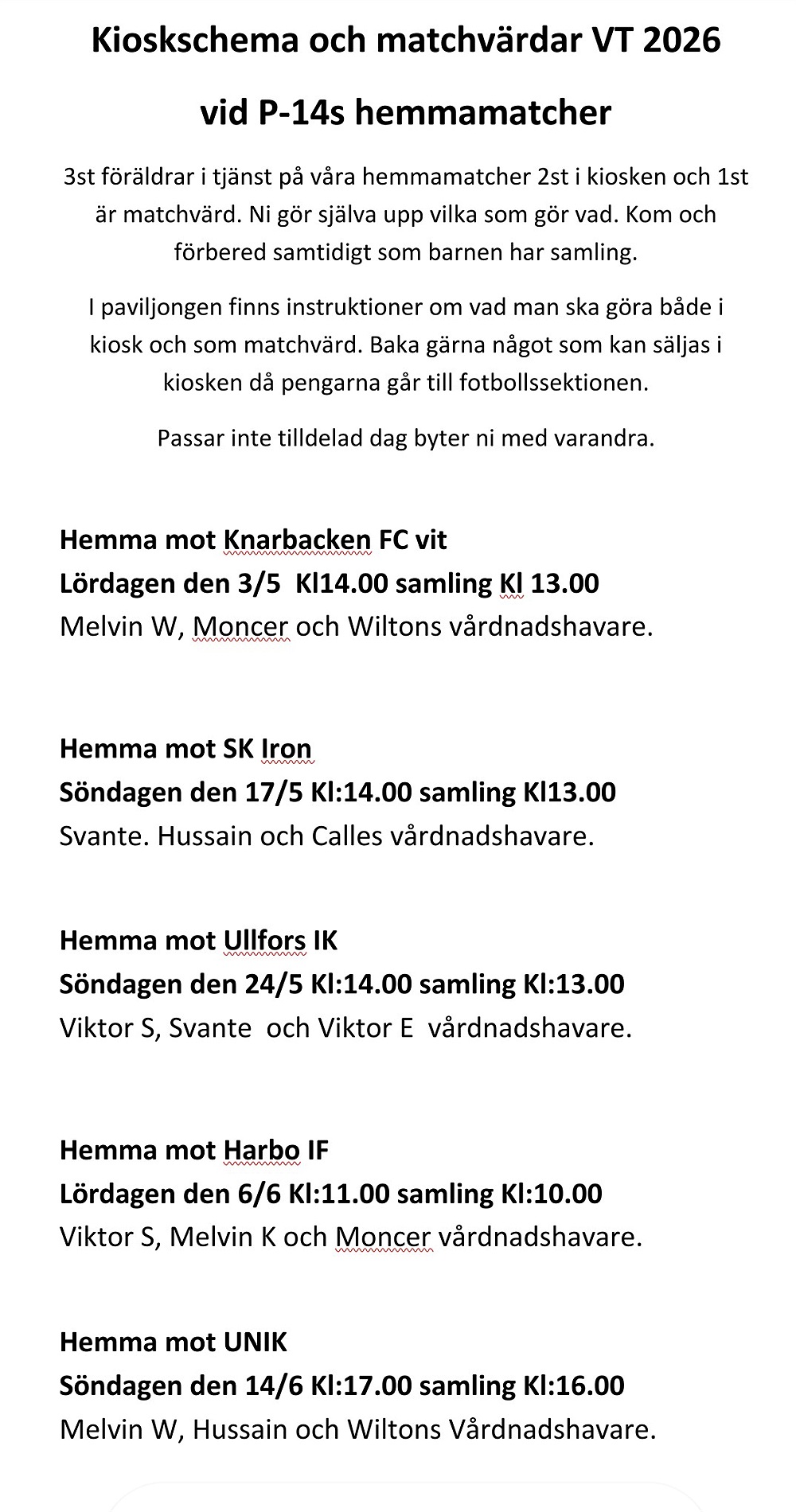 Kan inte delta hela matchen då mitt lag har match samma dag.