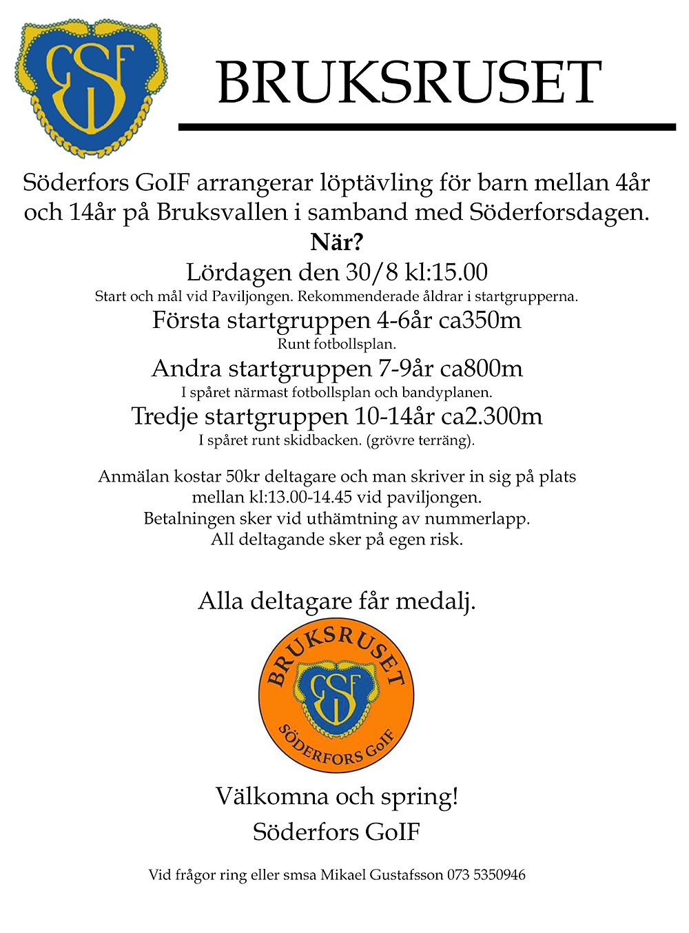Välkomna till Bruksvallen på Söderforsdagen 30/8 och spring Bruksruset kl15.00.