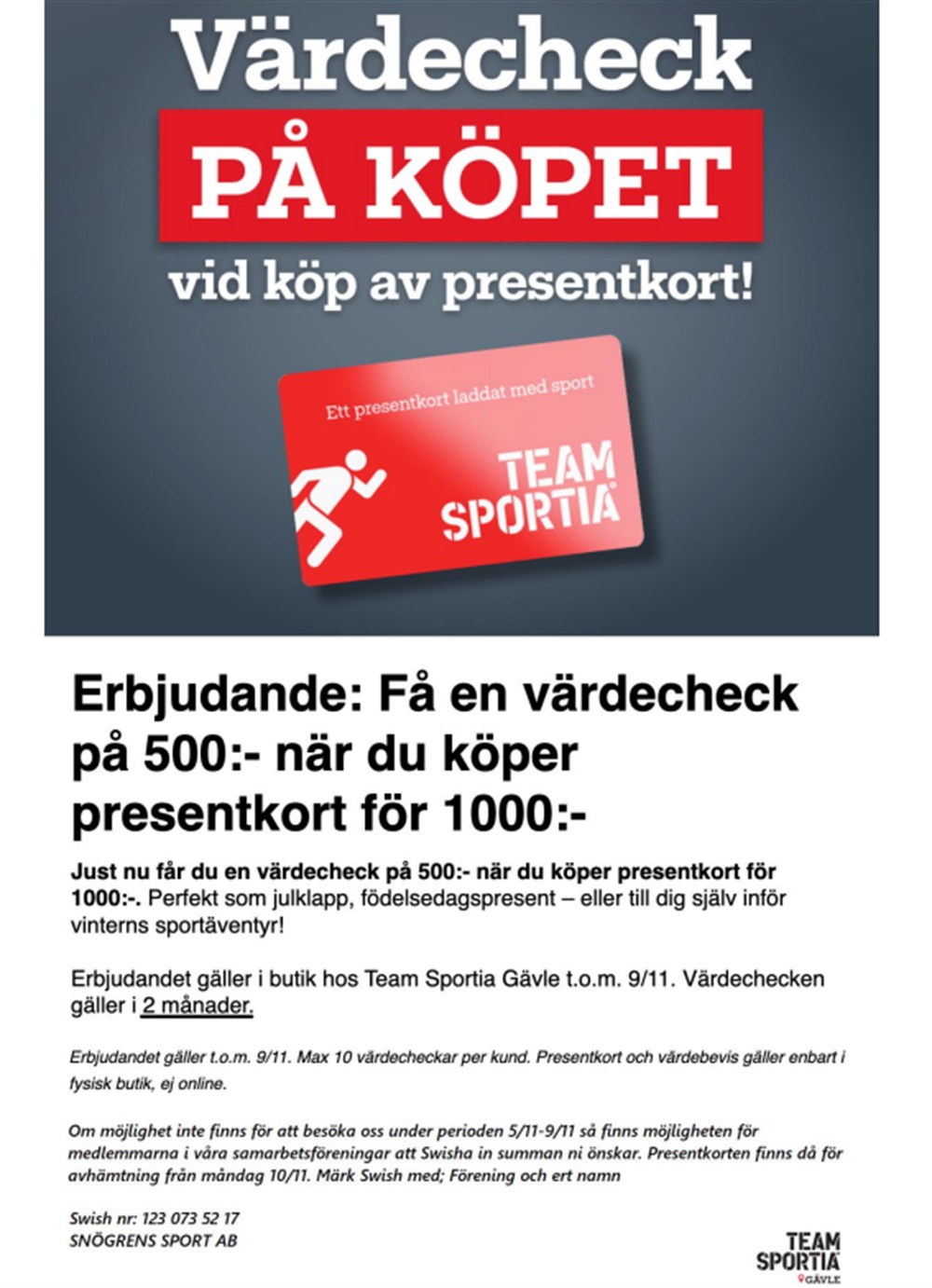 Erbjudande - Team Sportia (t.o.m 9/11)