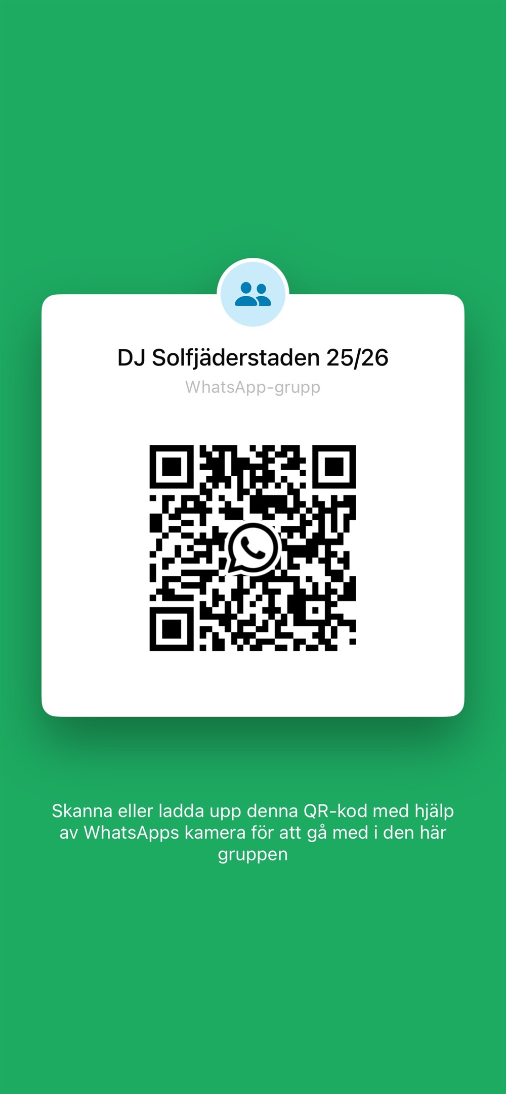 Det vore toppen om alla tjejer i DJ laget lägger till sig i denna whatsapp grupp. Gruppen är tänkt att användas när vi ledare behöver få tag på tjejerna eller snabbt vill få ut info. Börja med och ladda ner whatsapp scanna sedan QR:koden med kameran i whatsapp alternativt använd länken nedan.