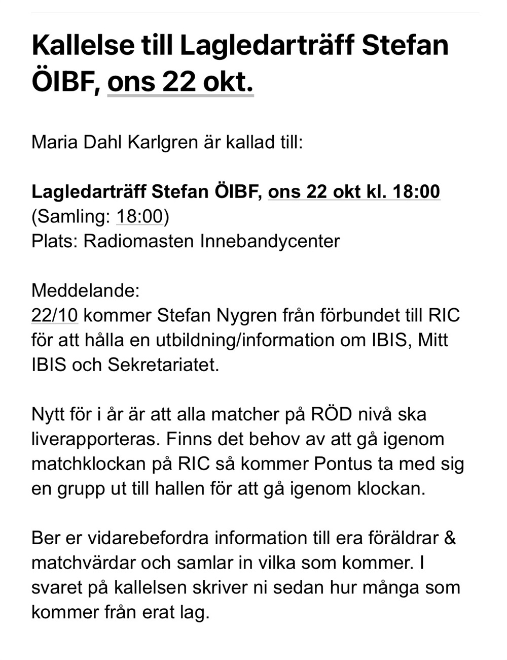 Hej alla spelare och föräldrar!