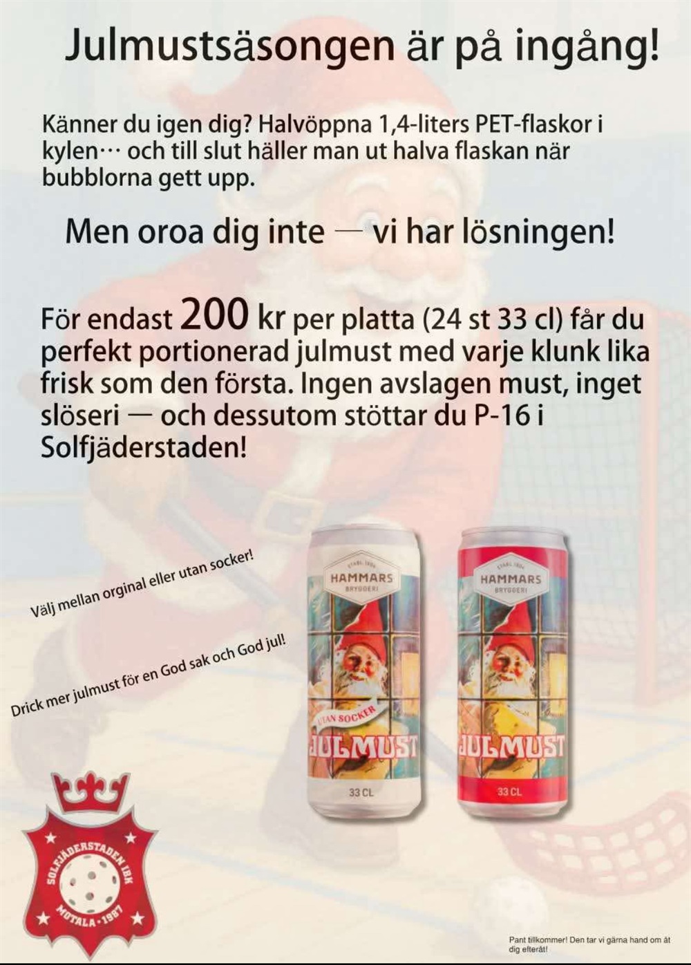 De flesta av er har blivit anslutna till en Messengergrupp och tagit del av information kring försäljning av julmust. Är ni inte anslutna till denna, fråga någon annan förälder på plats så vi hjälps åt så alla får access.