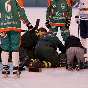 | 76:06 | Spelarskada med ambulanstransport. | Spillersboda IF | ||